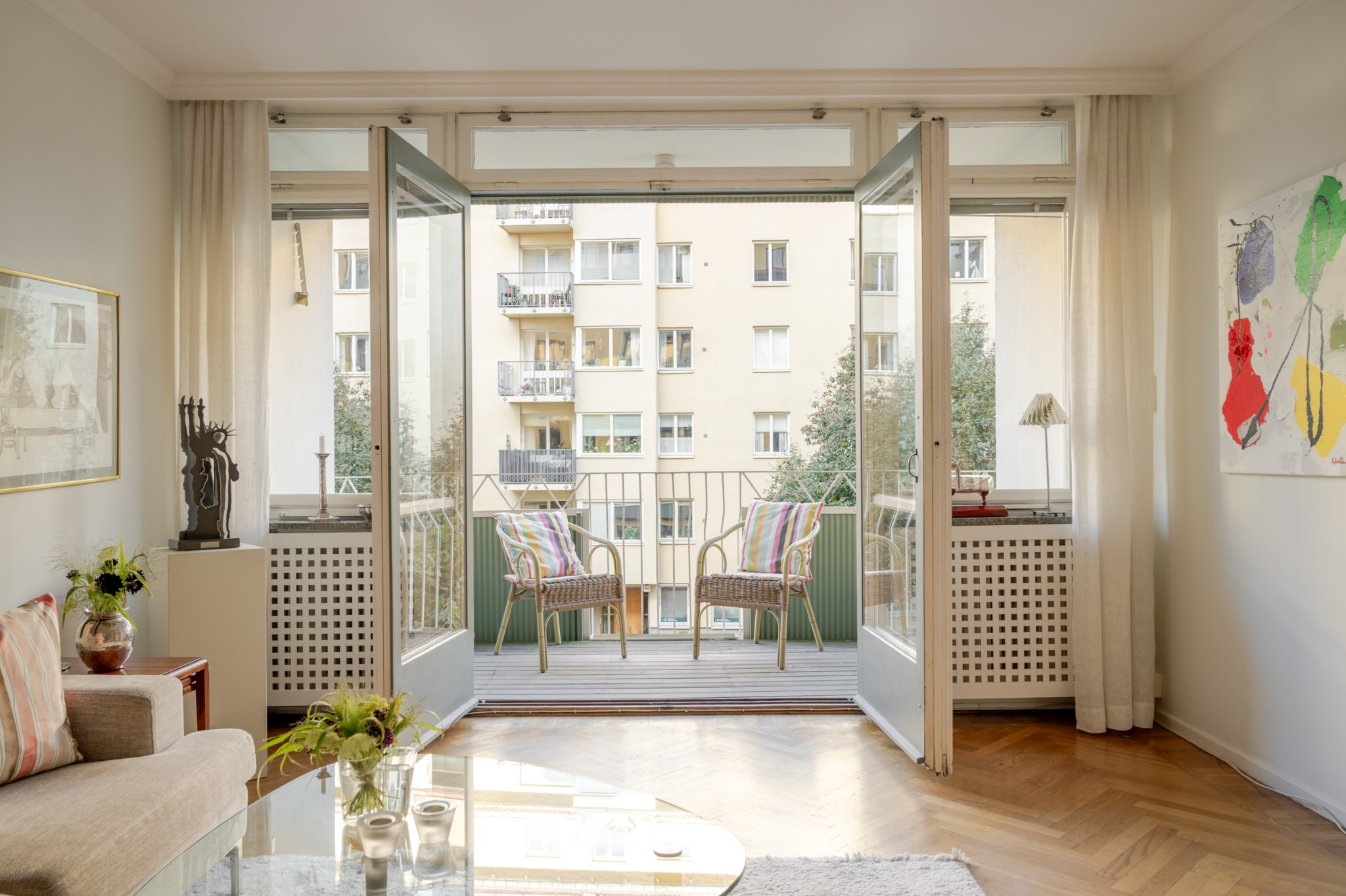 Välkommen till en suverän lägenhet om 110 ljusa och välplanerade kvm med genomgående planlösning. Stora fönsterpartier, öppen spis, fiskbensparkett, rymlig balkong i väst, mycket bra förvaring samt många fina detaljer från byggåret. Lättmöblerat vardagsrum, badrum, gästtoalett och upp till tre sovrum.