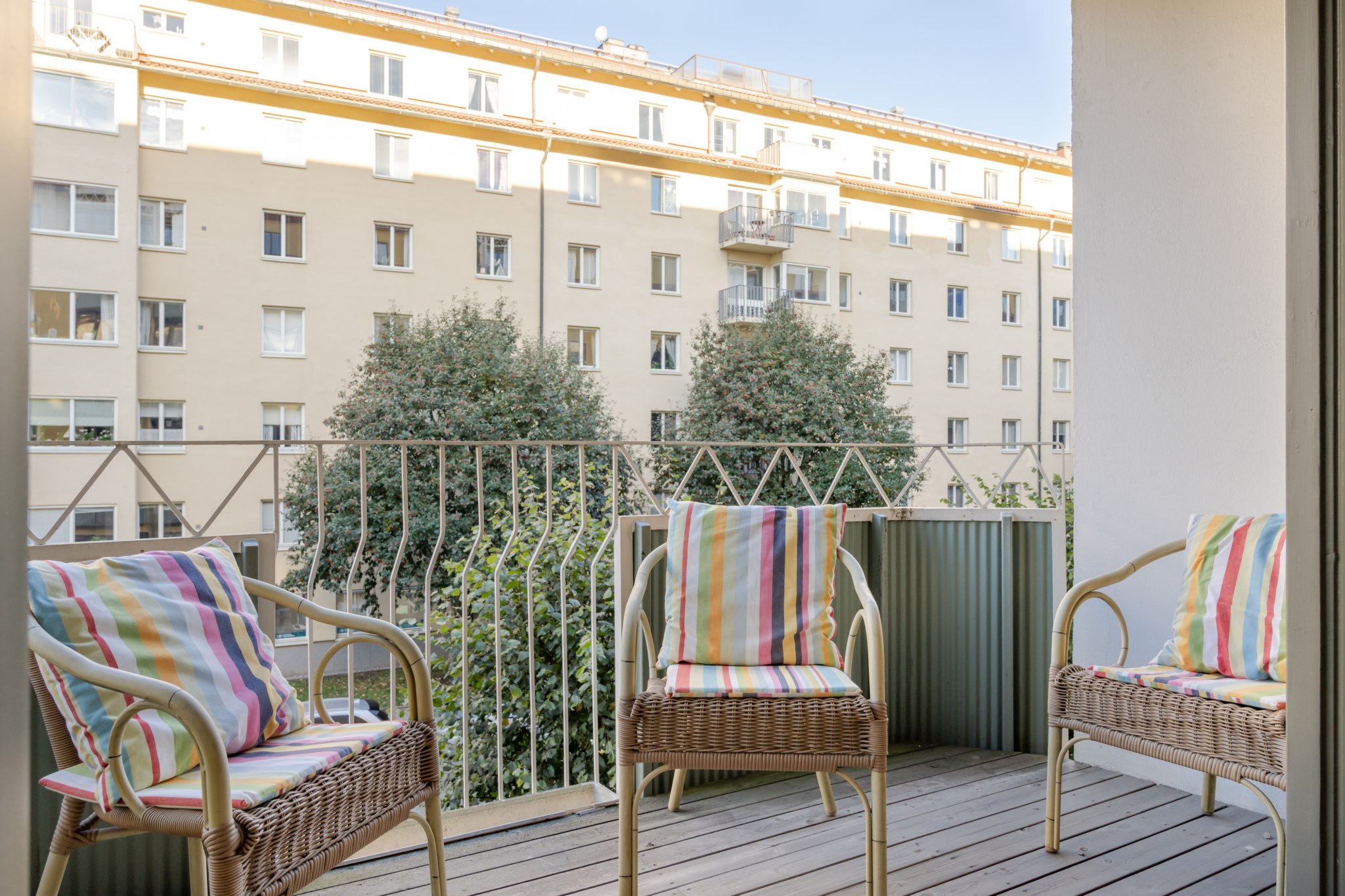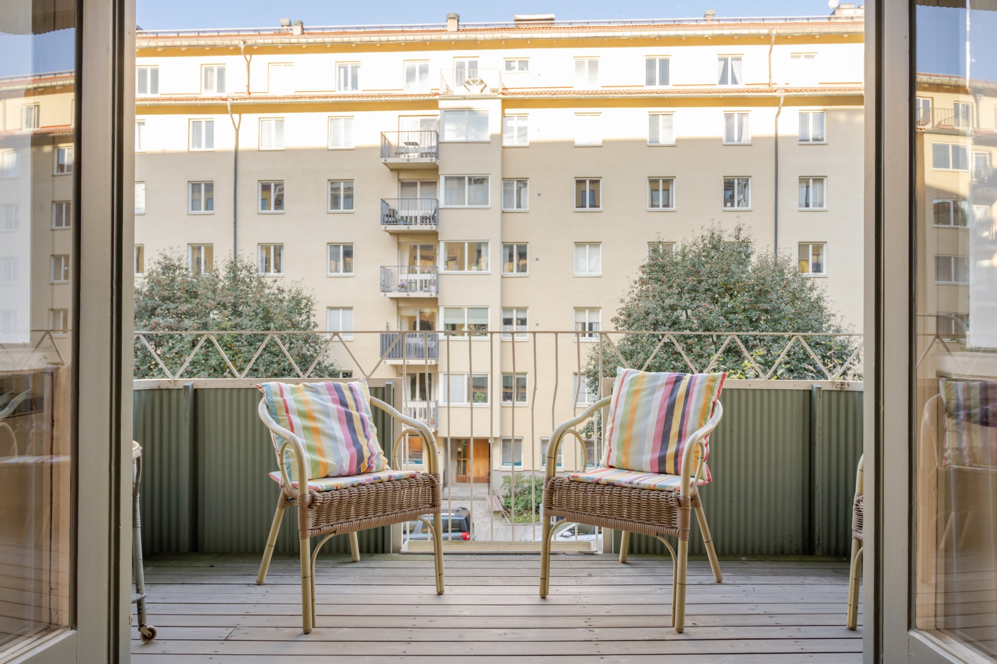- Stor balkong med plats för bord, stolar och planteringar. Västerläge med eftermiddag/kvällssol.
