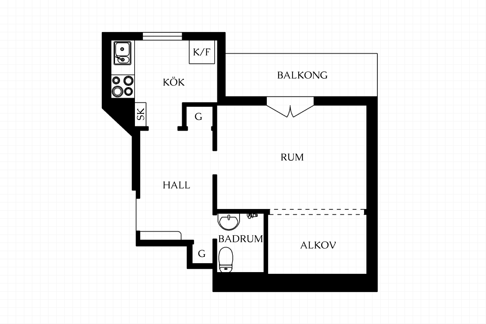 Bostaden disponeras idag som en rymlig etta med alkov och separat kök, men erbjuder goda möjligheter att skapa en smart och yteffektiv tvåa för den som önskar (styrelsens godkännande krävs men andra i huset har gjort det). Här finns vackra detaljer, fin rymd och ett charmigt uttryck som tillsammans med utvecklingsmöjligheterna ger dig chansen att skapa ett riktigt drömhem.
