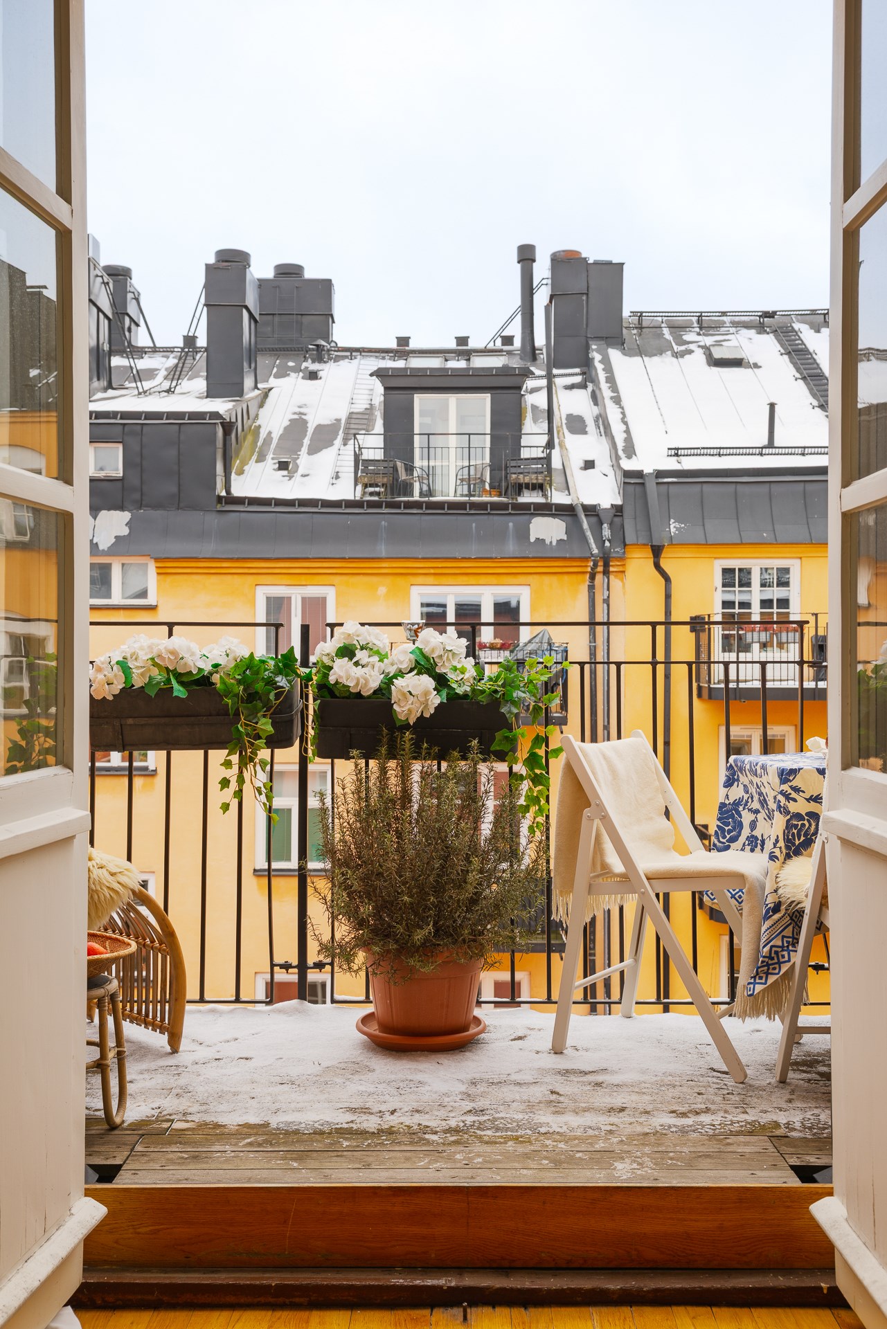 Underbar balkong med himlen som tak. Ljuvligt sydväst-läge och skyddat utan intilliggande balkonger. Här finns gott om plats för sittgrupp och mycket planteringar som kommer trivas i solen.