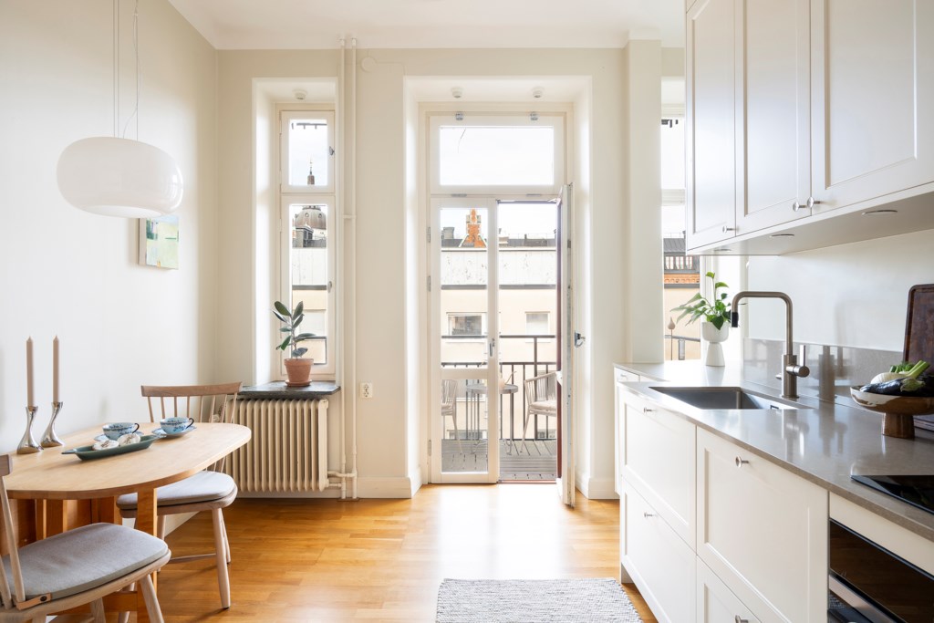 Välkommen till en suverän lägenhet om 74 ljusa och välplanerade kvm. Stora sällskapsytor med öppen planlösning mellan kök och vardagsrum, två sovrum, snyggt badrum och mycket bra förvaring. De tidstypiska detaljerna är på plats; fina trägolv, härlig takhöjd, spröjsade fönster samt vackra snickerier och spegeldörrar.