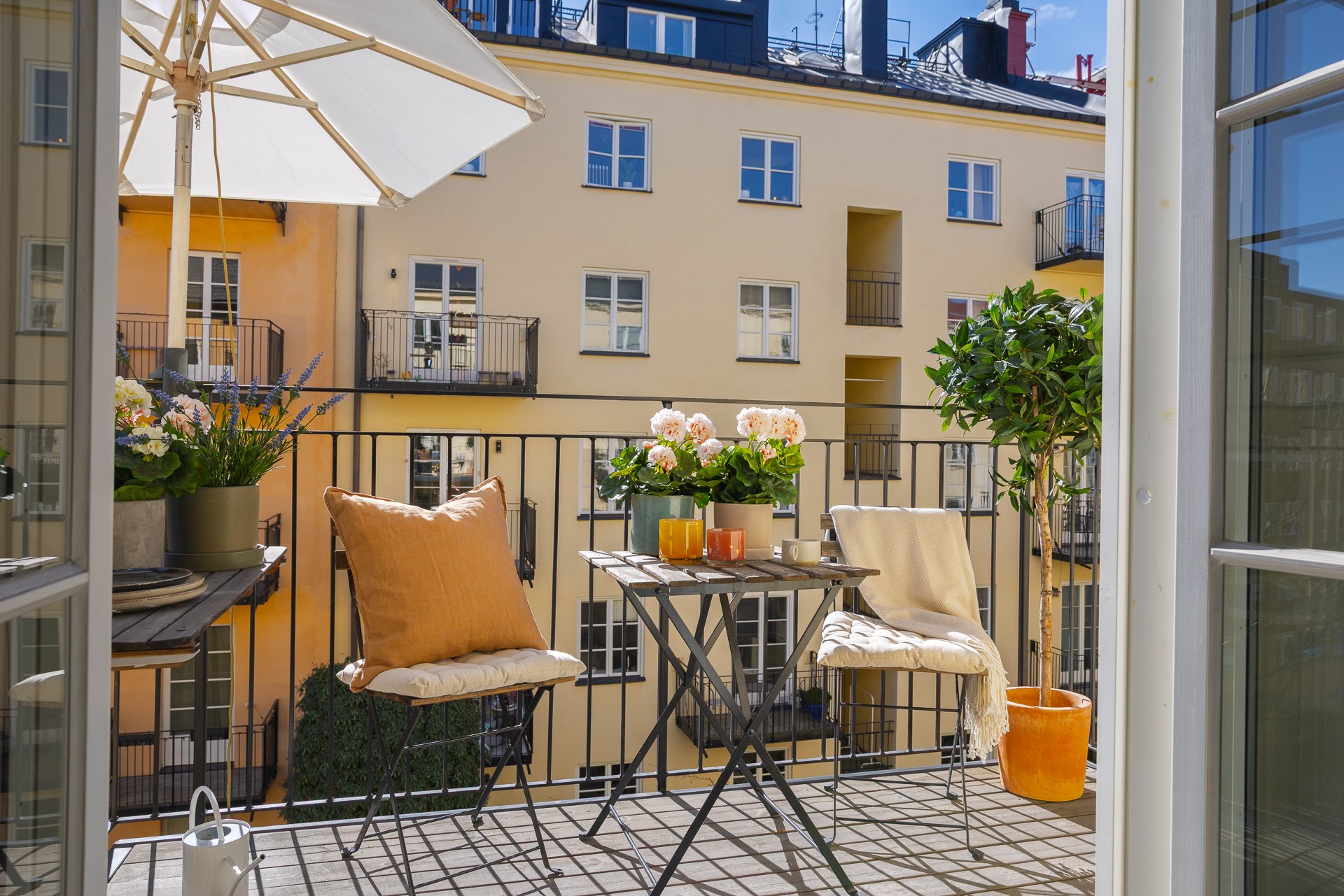 Högt upp i huset, mellan två mysiga gårdar, finns denna mycket välplanerade och trivsamma 2:a i genomgående fint skick och med ljuvlig balkong med gott om sol. Här bor man på ytterst välplanerad yta med fönster åt två håll, bra sovrum i svalt norrläge med förvaring och plats för dubbelsäng, samt generösa sociala ytor i soligt söderläge. Öppen planlösning mellan kök och vardagsrum och den härliga balkongen förlänger ytorna ytterligare. Fin 20-talscharm med högt till tak, vackra trägolv och speglade innerdörrar. Lugnt och samtidigt centralt läge med omedelbar närhet till Skanstulls generösa utbud och kommunikationer, mysiga Nytorget, grönskan i Blecktornsparken och promenadstråken längs kajen. Bostaden ligger i gårdshus, tyst och lugnt men bekvämt med hiss.
