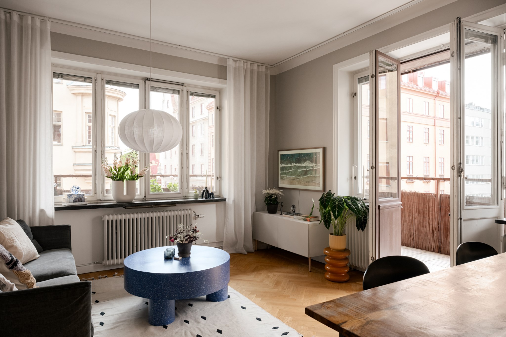 Välkommen till en ljuvlig funkistrea med solig hörnbalkong och med utsikt mot Vitabergsparkens kulturhus! Stora fönsterpartier i två väderstreck och generös takhöjd ger hemmet en härligt luftig atmosfär med fint ljusinsläpp. Genomgående sobra och moderna färg- och materialval och hela lägenheten andas snygg funktionalism. Många tidstypiska detaljer finns bevarade såsom djupa nischer och stenbänkar, fiskbensmönstrad parkett samt speglade dörrar och detta skapar tillsammans med moderna funktioner en harmonisk balans. Sommartid utökas bostadsytan med ca 19 kvm då man tillbringar mycket av tiden på den härliga hörnbalkongen som är någonting utöver det vanliga. Här på den sydvästvända balkongen njuter du av solen från morgon till kväll. Bostaden passar perfekt för paret eller den lilla familjen. För den som önskar en lyxig tvåa med stora sociala ytor är det lätt att ta bort väggen mellan vardagsrum och sovrum.