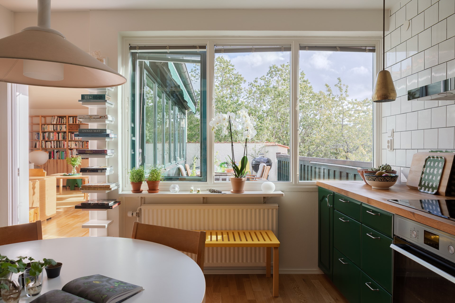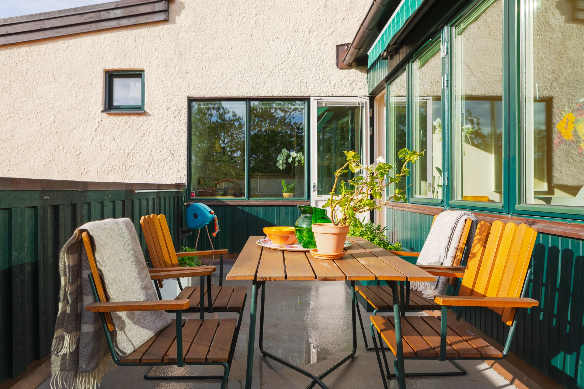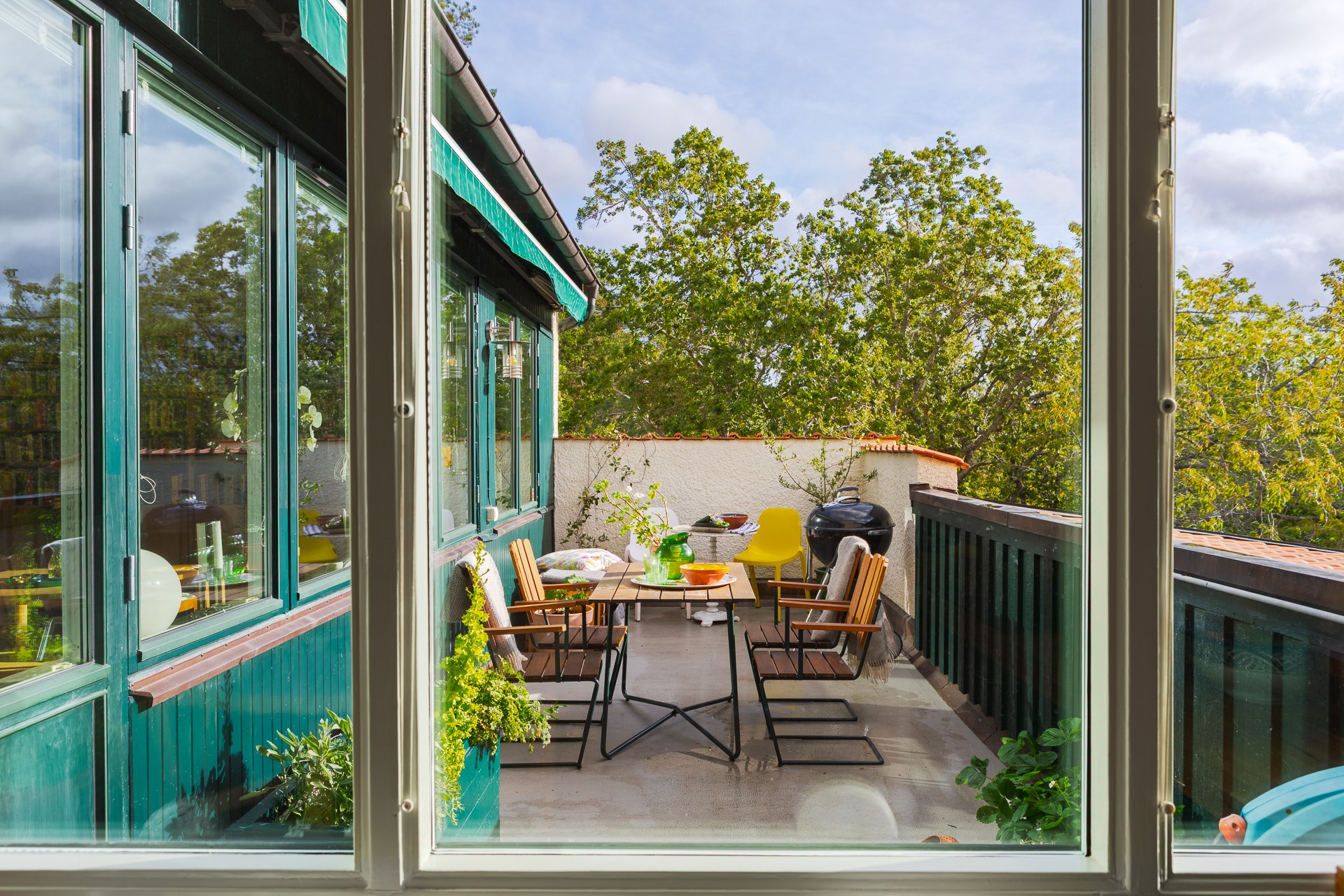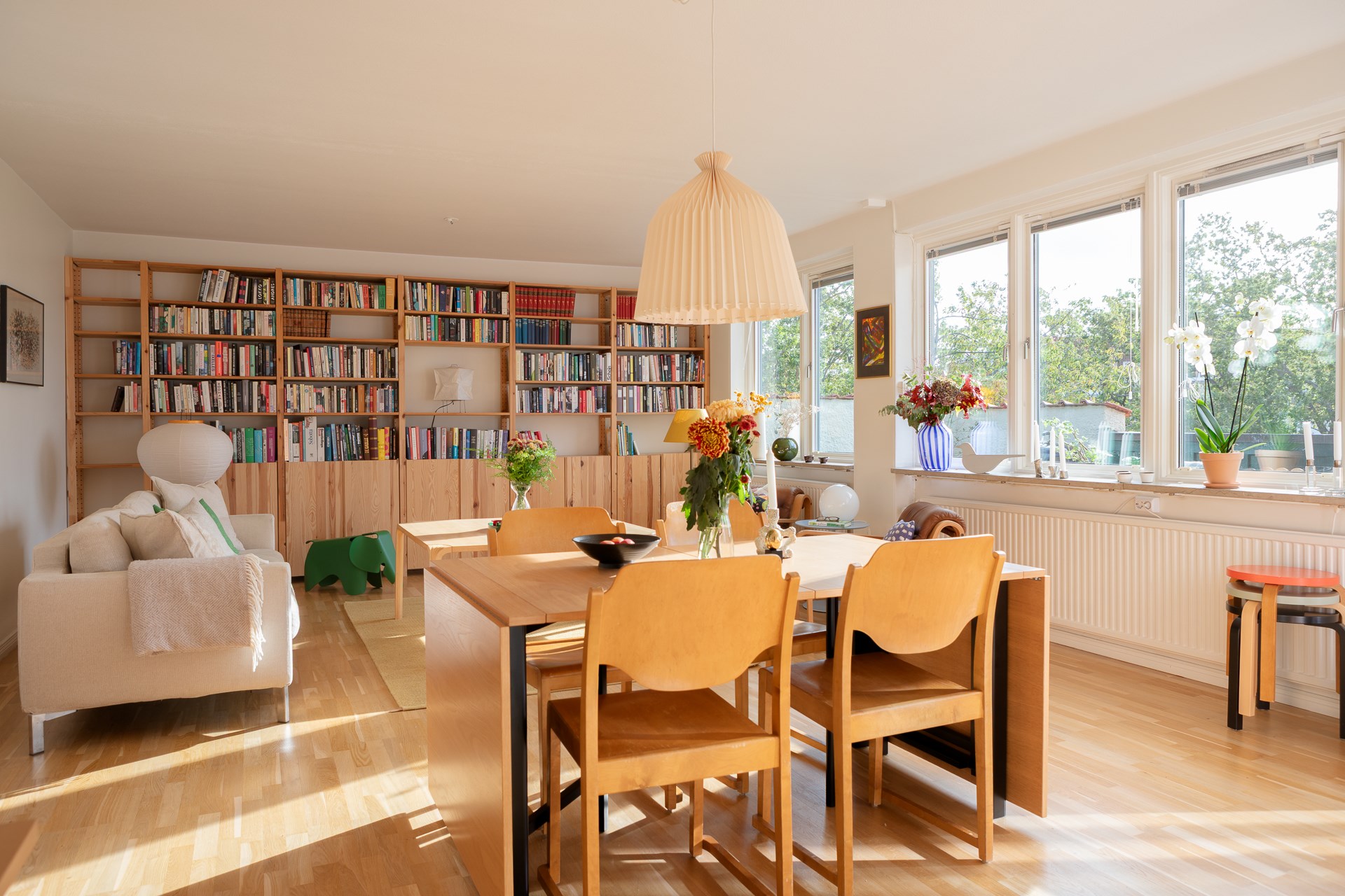 Här nås vi av en ljus och stilfull etagebostad med genomtänkt planlösning och generösa sällskapsytor. Här bor du högst upp i huset med fantastiskt ljusinsläpp, vacker utsikt och härlig atmosfär. Bostaden har nyligen uppdaterats med ett nyrenoverat badrum i fina material med såväl dusch, badkar och tvättpelare, smakfulla ytskikt och ett snyggt grönt kök med moderna vitvaror och gott om förvaring. Den halvöppna planlösningen mellan kök och vardagsrum skapar en social och inbjudande känsla, perfekt för både vardag och fest. Härifrån är även utgången till den soliga, insynsskyddade takterrassen med markis – en underbar plats för avkoppling, grillkvällar och umgänge med familj och vänner.
