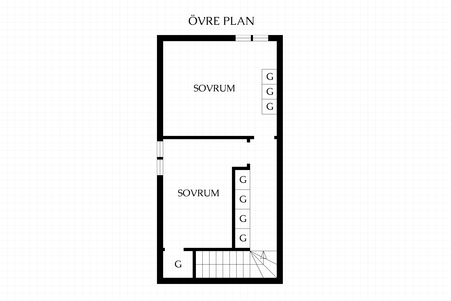 På övre plan finns ett större, rogivande sovrum med gott om plats för förvaring. Från fönstret kan du njuta av den vackra naturen och glimtar av vattnet. Här finns även ytterligare ett mysigt rum som passar perfekt som kontor, barnrum eller gästrum, här finns också en inbyggd garderob med ett litet fönster. I passagen finns bra förvaring i flera garderober.
