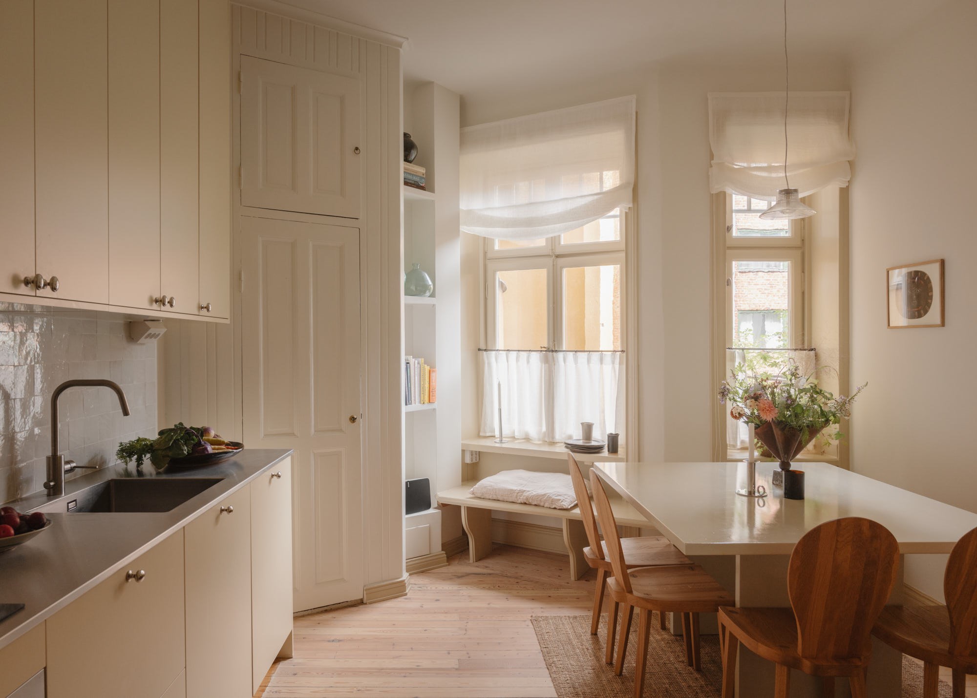 Själfullt hem i ett vackert nationalromantiskt hus. Två trappor upp bor du här med våningskänsla i stora rum och med en väldisponerad och genomgående planlösning med högt i tak, fina detaljer med såväl lister som serveringsskåp och vacker färgsättning. Takhöjden är 3.10 meter och rummen omges av stora fönsterpartier, vackra spegeldörrar och ljusa brädgolv. Lägenheten har renoverats omsorgsfullt och låter originaldetaljer skina ihop med platsbyggda möbler och noggrant utvalda färger. Här finns allt man kan önska i bekvämlighet med badrum med tvättmaskin, mycket bra förvaring stort familjekök. Välskött förening med god ekonomi, hus i gott skick och som äger sin mark. Här bor ni på trendigt läge nära allt man kan önska av såväl restauranger, butiker, kommunikationer men också grönska och vatten.