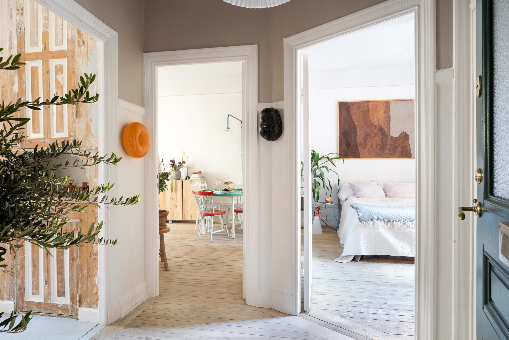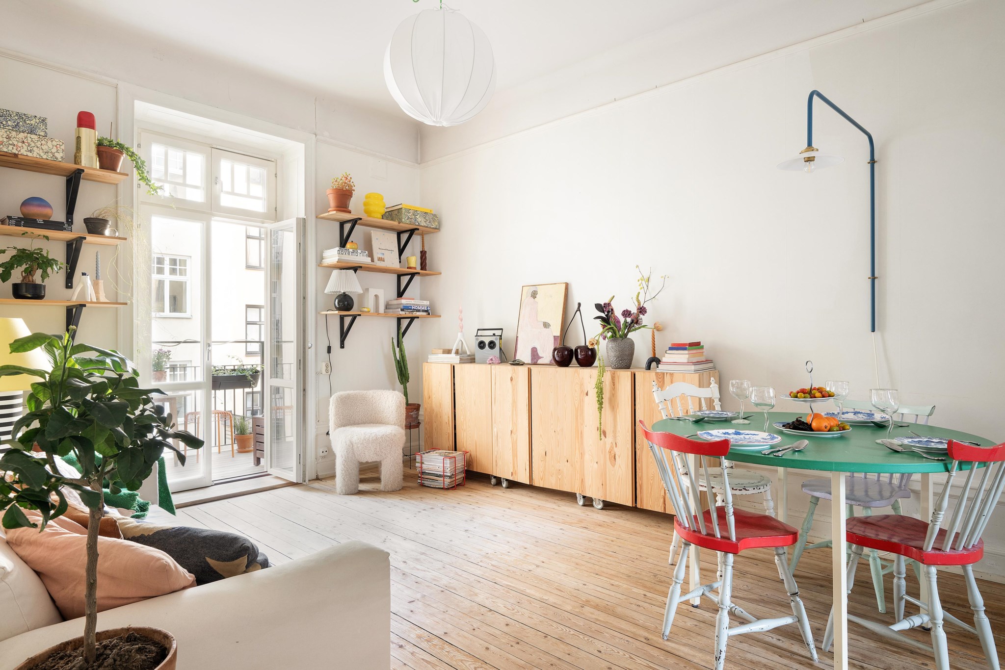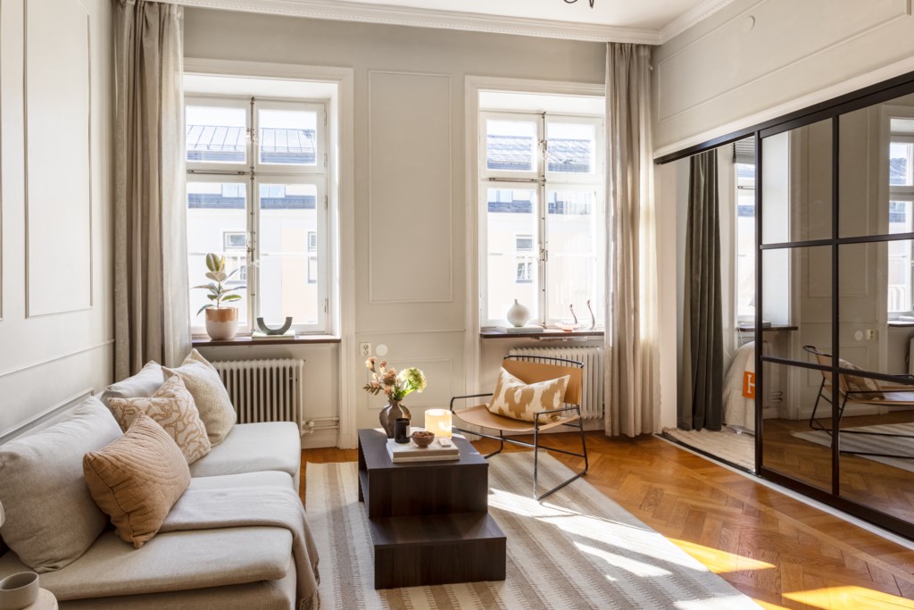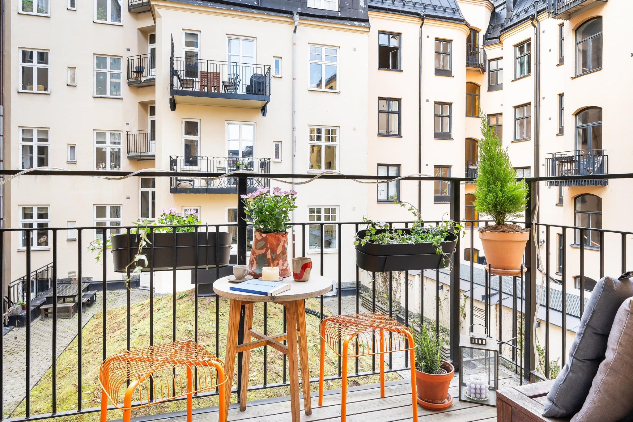 Från sällskapsrummet, som har plats för soffgrupp och matsalsmöbel, nås balkongen som ligger tyst och rofyllt mot gård. Bostaden ligger mellan två gårdar, helt bortom stadens brus, och sovrummet är luftigt och rofyllt med grönska utanför fönstret. Här sover man gott! Vacker hall som öppnar upp som en solfjäder till hemmets rum. Mängder av bevarade detaljer såsom trägolv, snickerier, serveringsskåp och vackra fönster.