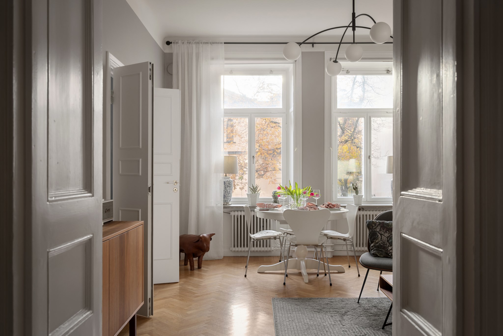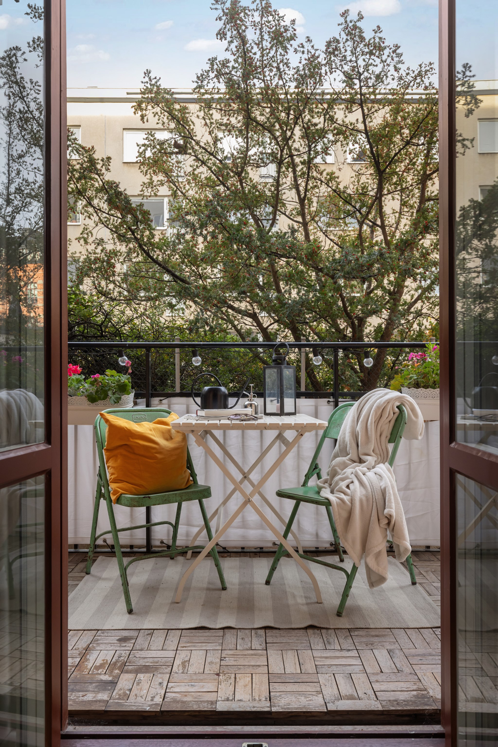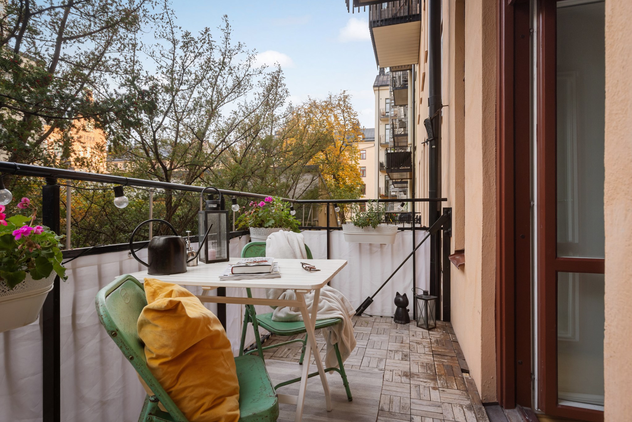 Ett hem där sekelskiftescharm, väl genomtänkta ytor och en ovanligt stor balkong samspelar till en bostad som känns både trivsam och funktionell.