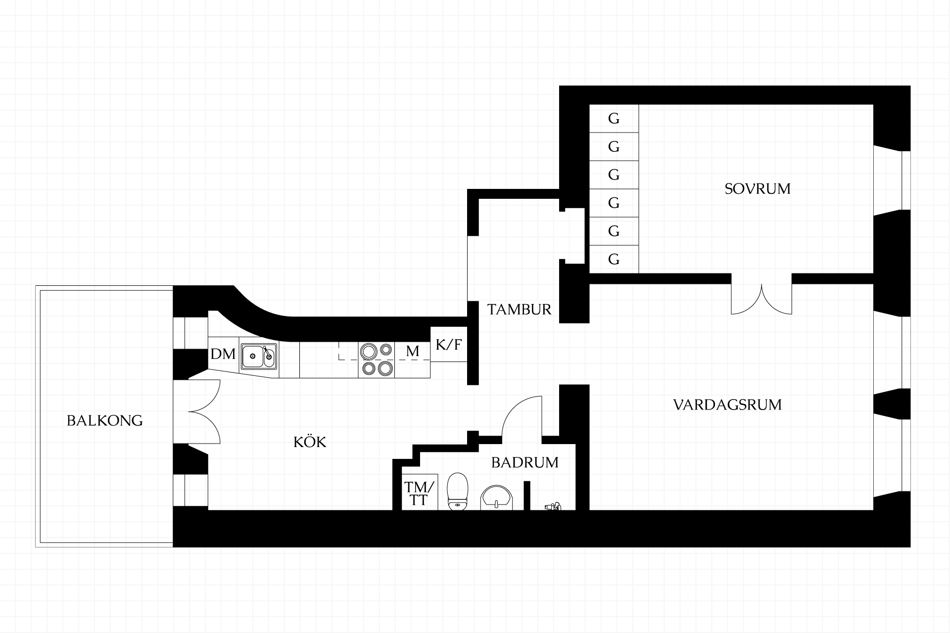 Planlösningen är smart och lätt att leva i. Köket är rymligt och avskilt, med direkt utgång till balkongen – en naturlig förlängning av hemmet under årets varmare månader. Vardagsrummet vetter mot Folkungagatan och präglas av ljus, höjd och generösa ytor som inbjuder till både avkoppling och umgänge. Sovrummet erbjuder gott om plats och en lugn atmosfär, medan badrummet är smakfullt renoverat och stilrent.