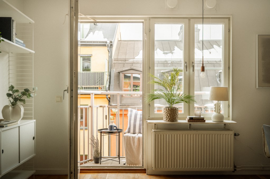 Ett hem där sekelskiftescharm, väl genomtänkta ytor och en ovanligt stor balkong samspelar till en bostad som känns både trivsam och funktionell.