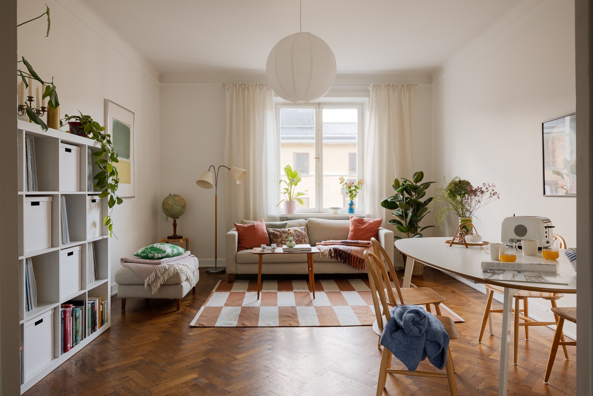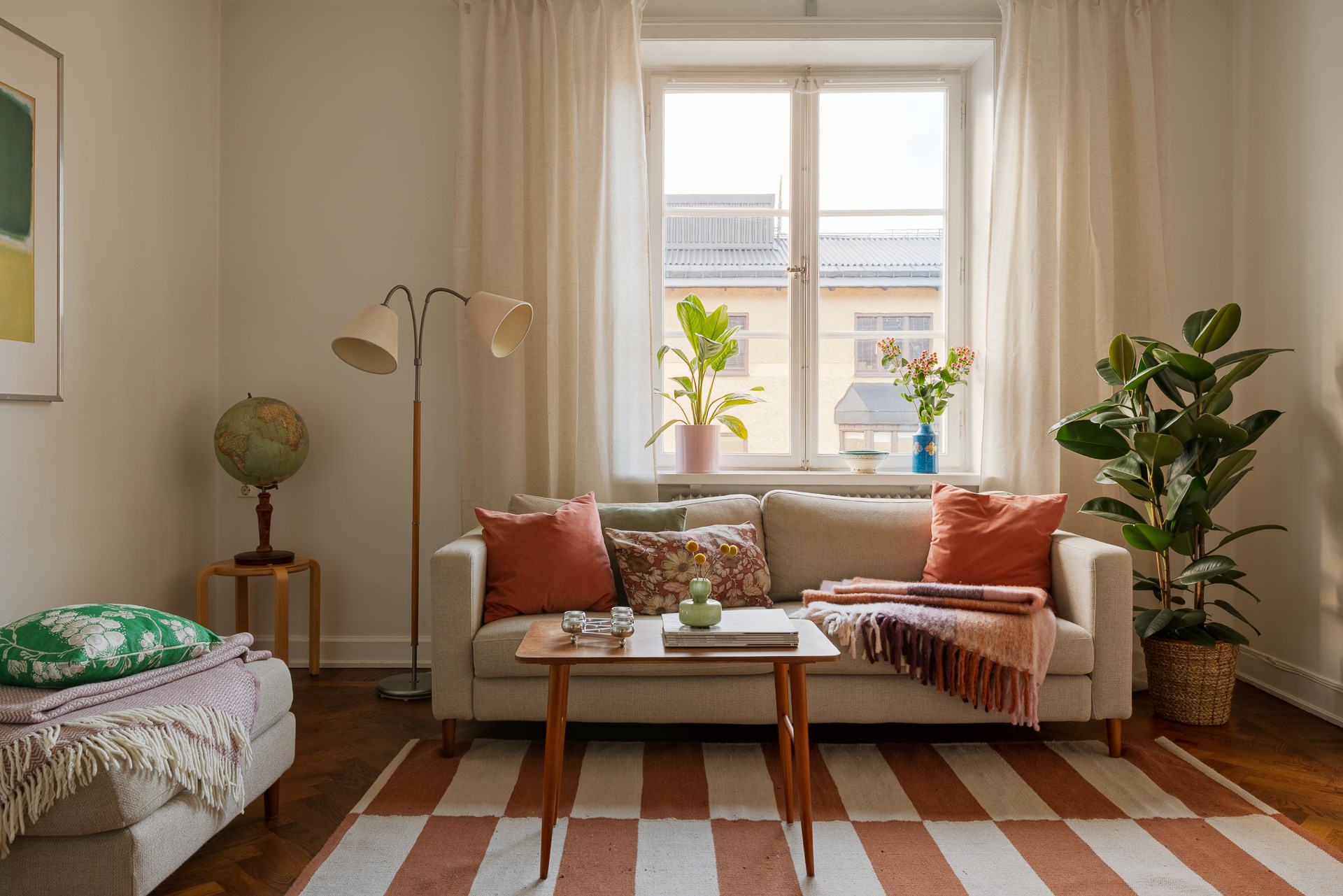 Välplanerat och socialt hem med en genomgående planlösning mellan kök och sällskapsrum vilket inbjuder till mingel och middagar. Hemmet har stor rymd tack vare generös takhöjd och fönster/balkongdörrar i två väderstreck. Här finns allt man kan önska i bekvämlighet. Köket är hemmets hjärta, centralt placerat och här finns både mycket god förvaring, bra arbetsytor och plats för ett stort matbord i direkt anslutning i vardagsrummet. Båda sovrummen är i bra storlek och vetter mot Blekingetäppan vilket gör att man vaknar till fågelkvitter. Mycket bra förvaring finns i flera garderober samt bra förråd på vinden (endast en trappa upp).
