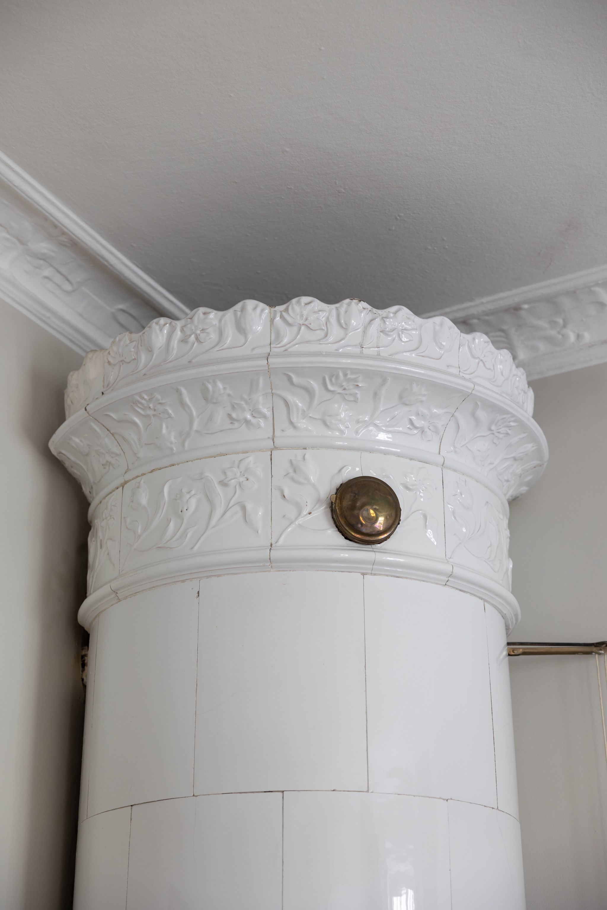 Bostaden har genomgått en noggrann ytskiktsrenovering och håller ett genomgående mycket fräscht skick med fin finish. Den bevarade sekelskiftescharmen återfinns i många klassiska detaljer såsom stuckaturer och burspråk, vackra kakelugnar samt fina snickerier vilket tillsammans med den härliga planlösningen ger en skön våningskänsla. Platsbyggda garderober och en elegant bokhylla i matsalen gör det möjligt att ha ett snyggt och undanplockat hem.
