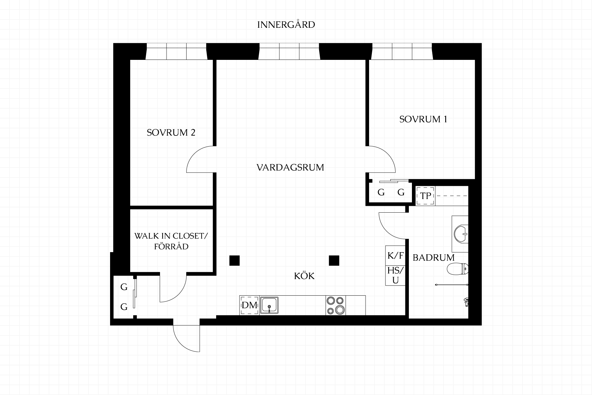 Planlösningen är öppen och social med kök och vardagsrum i samspel, perfekt för middagar, samtal och vardagsliv. Två rymliga sovrum, ett separat förråd som idag fungerar som walk-in closet samt ett påkostat badrum med tvättmöjligheter gör bostaden både praktisk och generös. Bostaden har ett karakteristisk tunnvälvt tak – ett arv från fastighetens industriella historia som ger en otrolig charm.