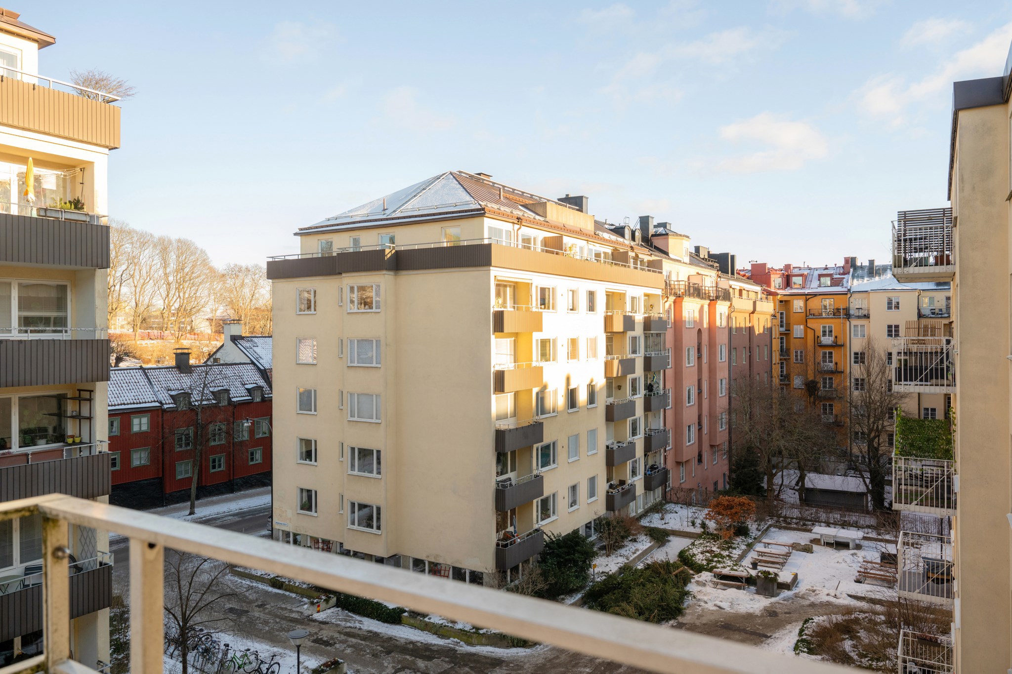 Läget är perfekt och samtidigt som lugnet råder på gården har man Nytorgets puls och Skånegatans stimmiga uteserveringar inom ett stenkast. Det är även nära till Skanstull med tunnelbanekommunikationer och ett stort utbud av shopping. Stranden längs med Årstaviken bjuder in till promenader, och från Barnängsbryggan kan man ta gratisfärja över till Hammarby sjöstad. Varmt välkommen på visning!