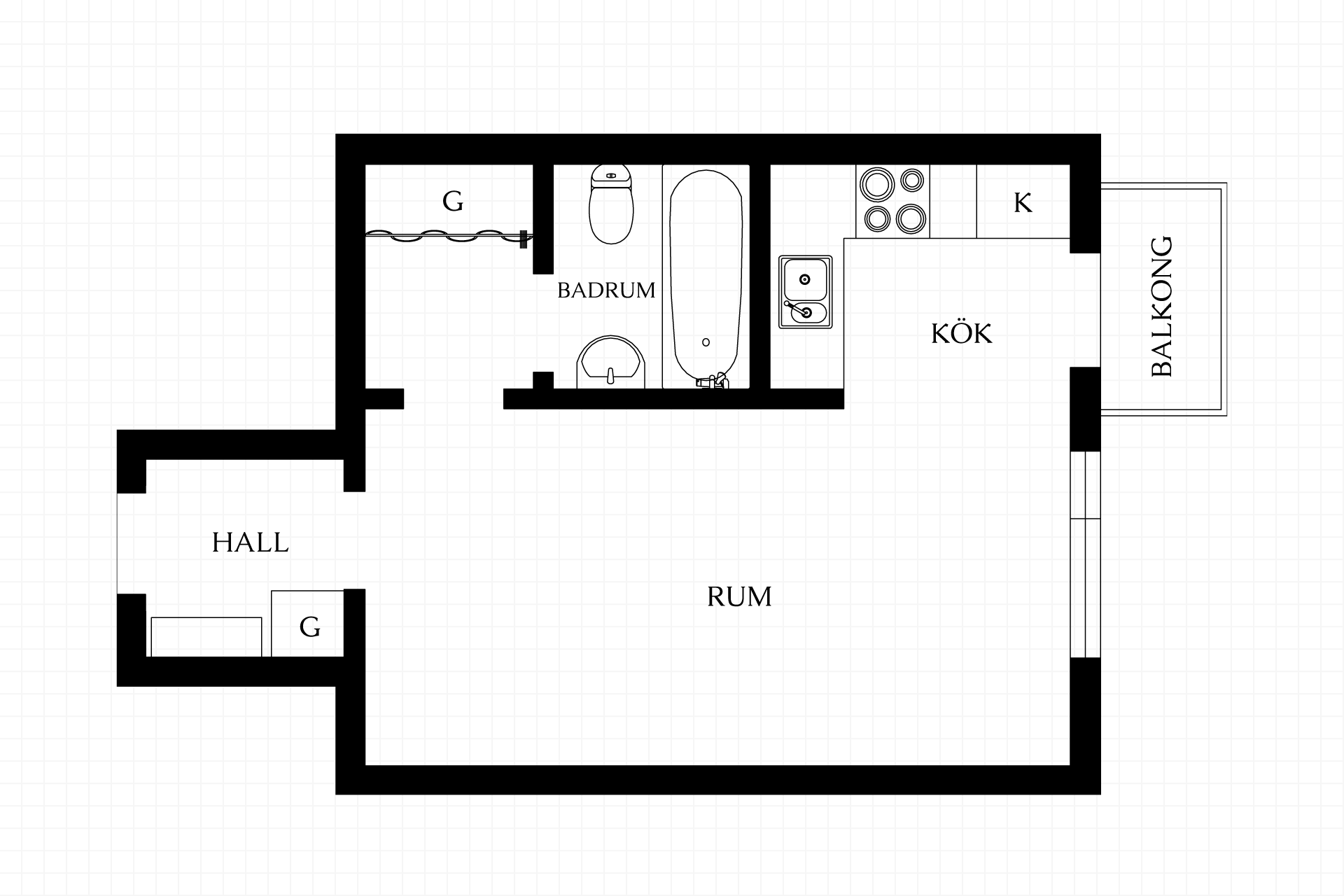 1 rum och kök