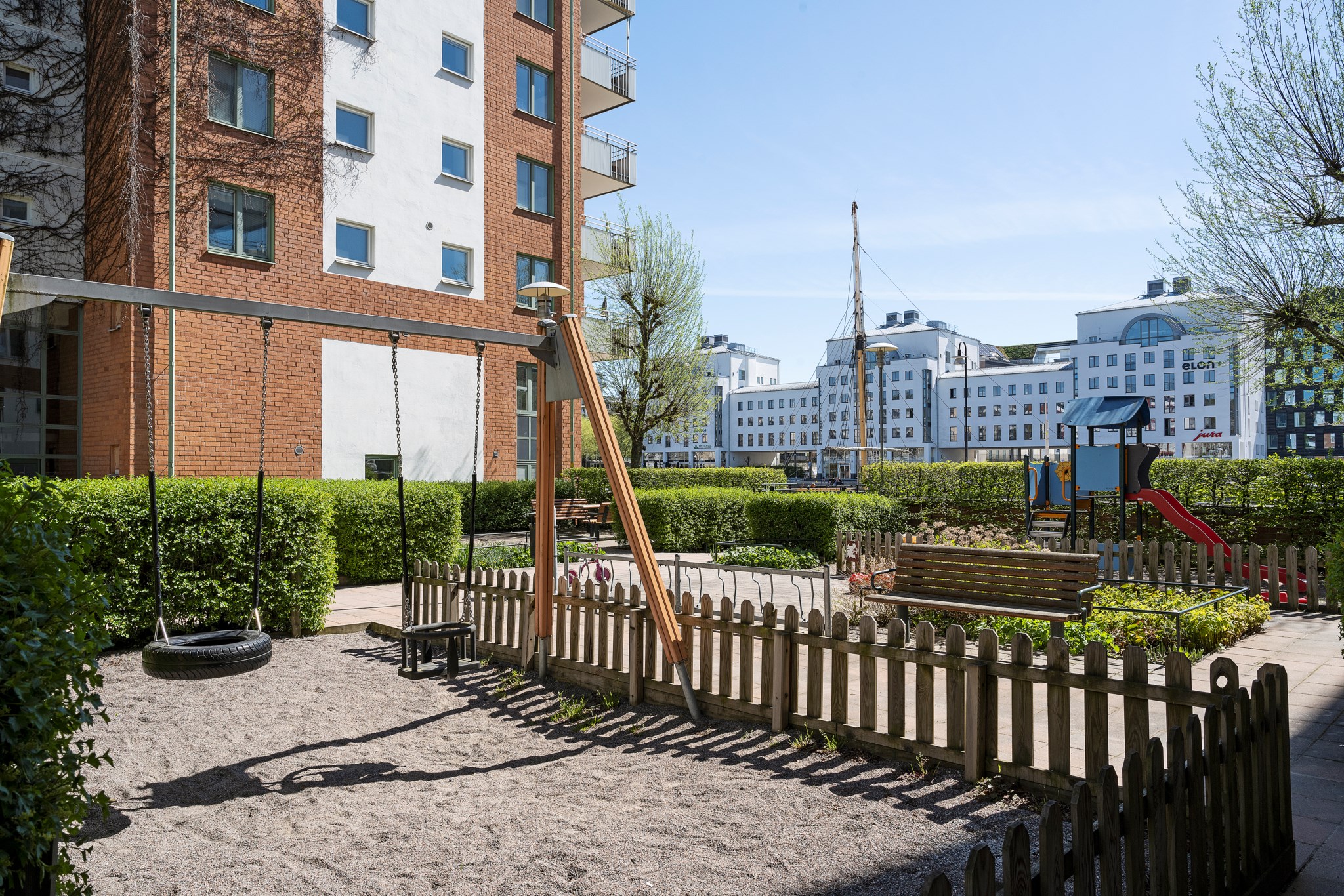 Stor välskött och lummig innergård. Lugna kvarter invid vattnet, grönområden och Stora Blecktornsparken. Bekvämt promenadavstånd till restauranger och Nytorget. Smidiga kommunikationer med busshållplats utanför porten, båtförbindelse till Hammarby Sjöstad och Nybrokajen samt några minuters promenad till tunnelbana vid Skanstull. Inom några år står dessutom tunnelbanestationen Hammarby kanal runt hörnet klar. Mycket stabil förening med stark ekonomi, den är nästintill skuldfri med alla bekvämligheter man kan önska sig såsom gemensamhetslokal, gästlägenhet och garage. Dessutom har boende i föreningen rätt till medlemskap i det mycket uppskattade kollektivhusföreningen Tullstugan. Välkommen till ett hem utöver det vanliga!
