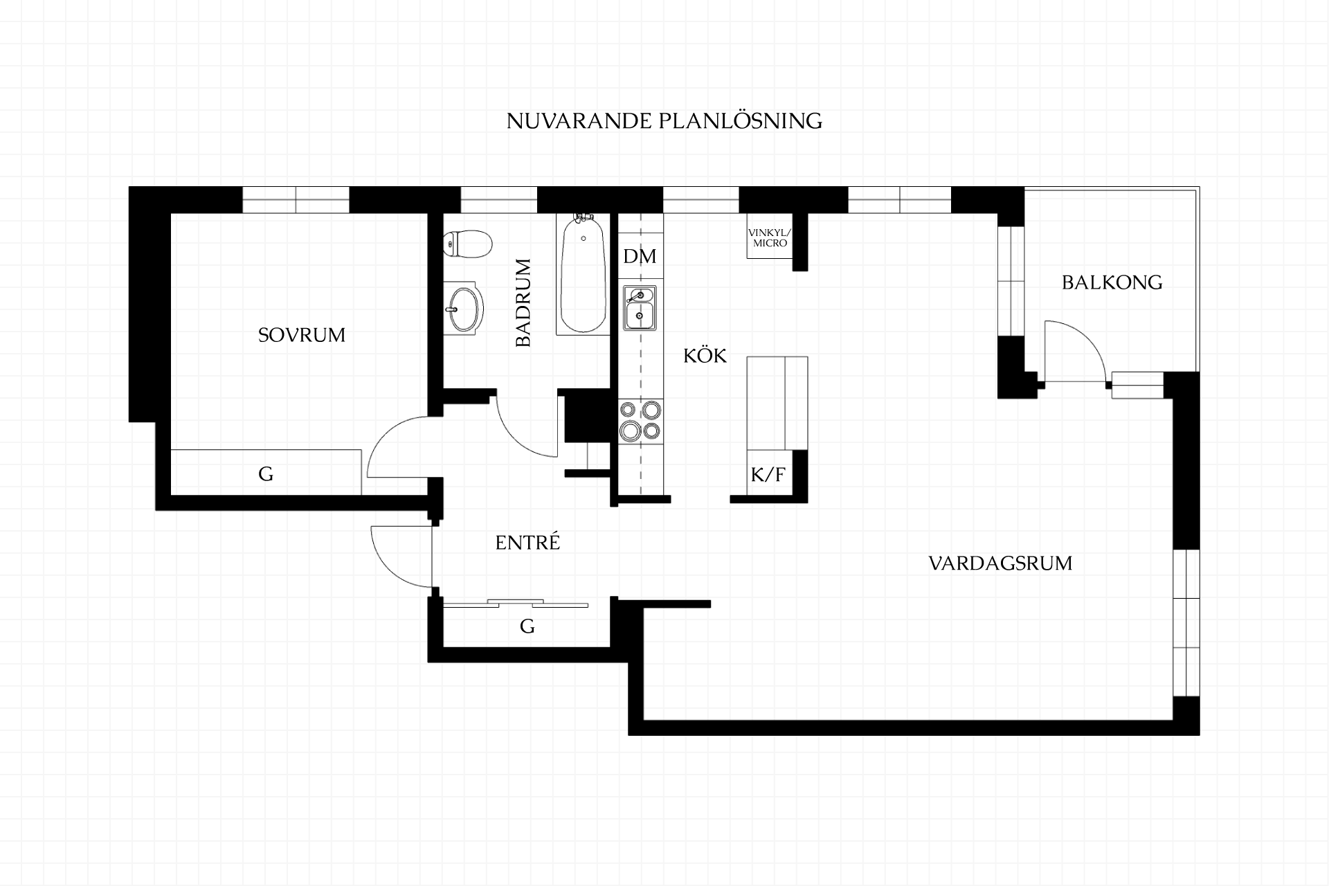 Vardagsrummet som går i en halvöppen planlösning mot köket inbjuder till social samvaro och skapar rymd. Detta i kombination med många fönster, det fria läget och kanalutsikt får ljuset att flöda och skapar en oslagbar känsla. Bostaden är perfekt för det sociala paret som inte ger avkall på komfort eller luftiga ytor men för den som har behov av fler rum går det enkelt att sätta upp en vägg och på så sätt skapa fler sovrum (se alternativ planlösning).