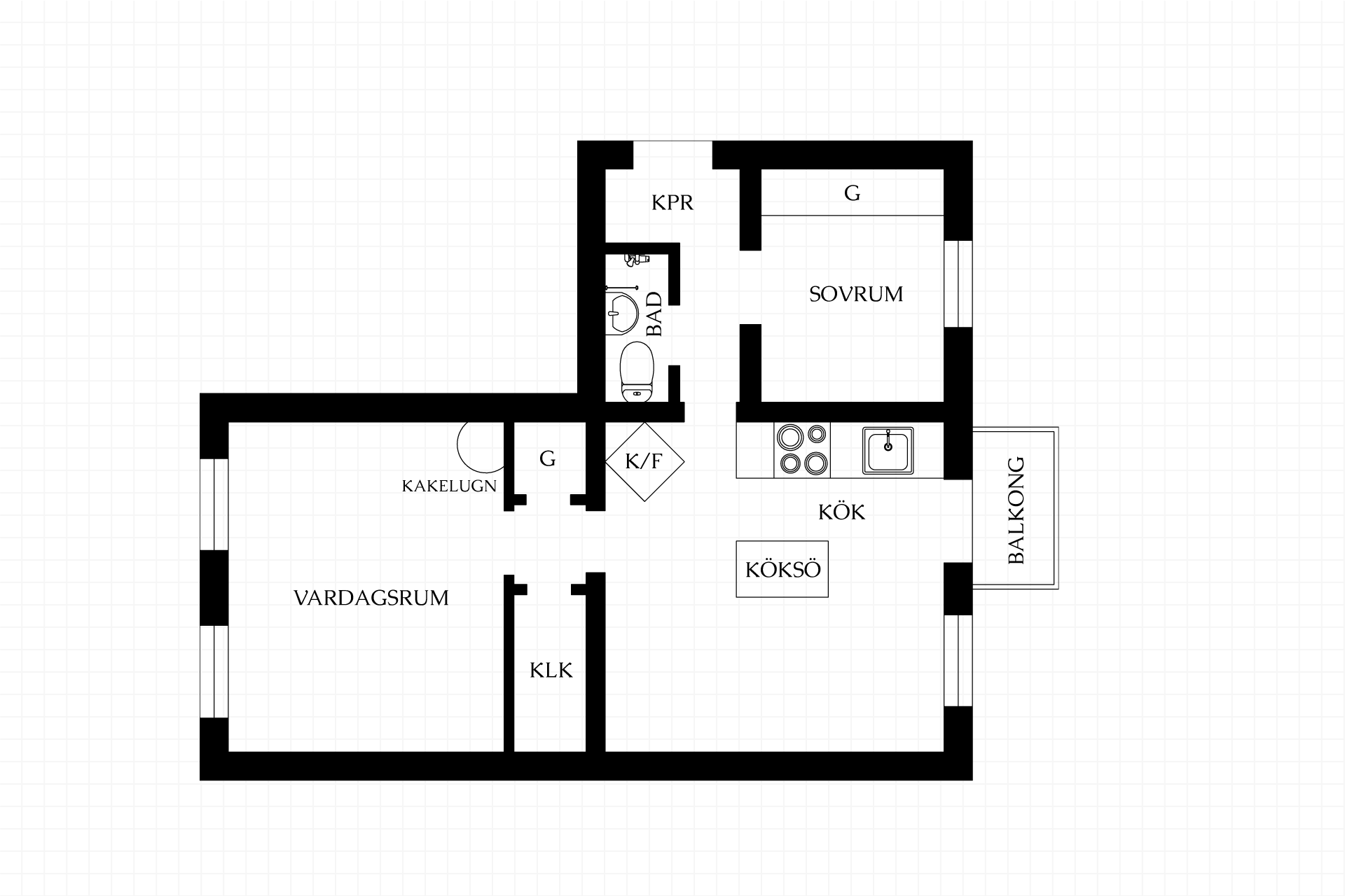 - Stort härligt och platsbyggt sällskapskök från Fagerdala snickeri på Värmdö. Köket går i lantlig och klassisk stil med snickerier i massiv furu, vackra beslag, dämpade lådor och infällda spotlights. Bänkskivor i öländsk kalksten och bra förvaring i bänkskåp samt på väggfasta hyllor. Maskinell utrustning såsom kyl och frys i klassisk design (Gorenje), spis med keramikhäll och varmluftsugn (Smeg), fläktkåpa (Gorenje) samt inbyggd diskmaskin. Arbetsö i mitten med förvaring utgör hjärtat i köket och inbjuder tillsammans med matplatsen till stora middagar och tillställningar i goda vänners lag. Vita väggar och tak med takrosett samt furugolv som hårdvaxats och pigmenterats. Två fönsterpartier mot gården, varav ett med utgång till balkongen.