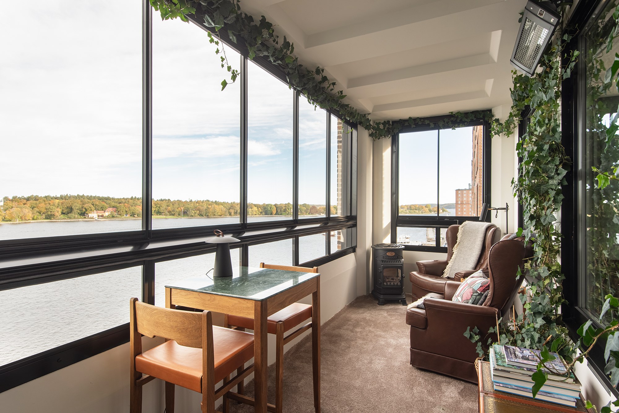 Stort och luftigt sällskapsrum med öppen planlösning mot köket och flera stora fönster i fil som ger ett fantastiskt härligt ljusinsläpp. Här kan man blicka ut över Saltsjön och Djurgården, ingen insyn. Härifrån nås även den härliga inglasade balkongen om ca 10kvm som går att nyttja som ett extra rum under vinterhalvåret och som man även kan öppna upp under sommarhalvåret för att njuta av eftermiddags-och kvällssolen! Härifrån har man en makalös utsikt och kan avnjuta vackra solnedgångar som man aldrig tröttnar på. Rummet har en härlig rymd och här finns det gott om plats för soffgrupp, bokhyllor och tv-möbel.