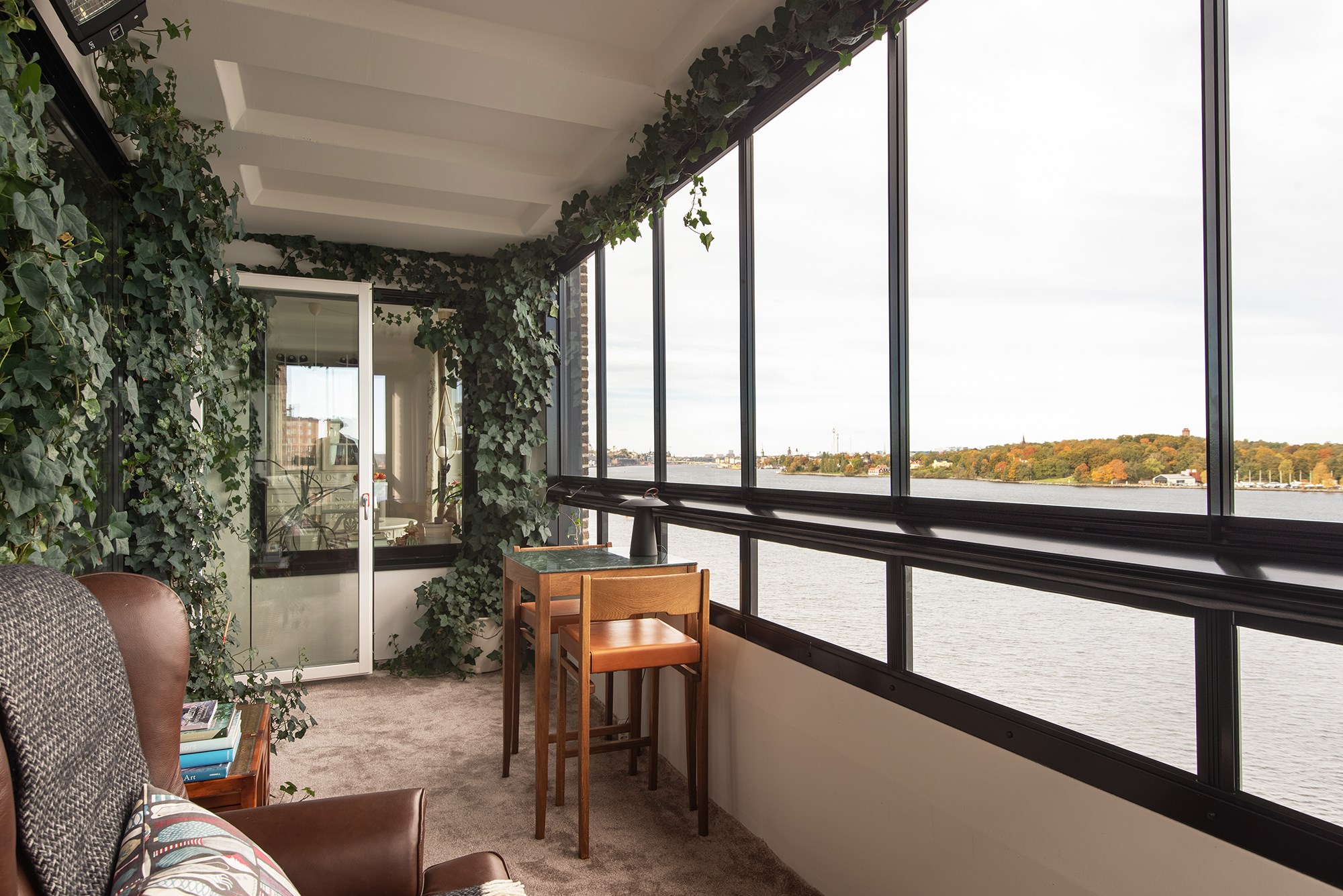 Nu finns det äntligen tillfälle att förvärva en av Kvarnholmens bästa trerummare om 90kvm med ett sjönära läge och magnifik utsikt över Saltsjön och anrika Djurgården. Här finns en stor inglasad balkong om ca 10kvm som ligger högt upp med direkt frontläge som blir ett extra rum och kan med fördel användas året om men vid varma sommardagar kan man välja att öppna upp glaset. Härifrån har man en magnifik utsikt mot Stockholms inlopp och kan följa båttrafiken och avnjuta vackra solnedgångar.