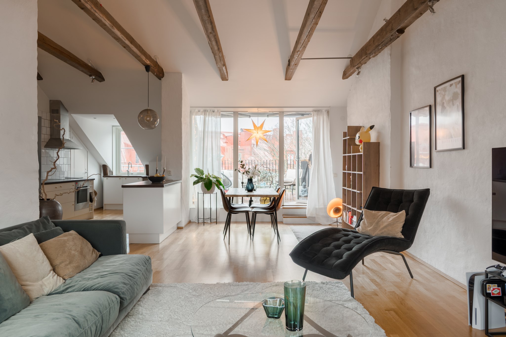 Välplanerad vindsvåning med generös takterrass i soligt västerläge! Här möts du av luftiga sociala ytor med öppen planlösning mellan kök och vardagsrum. Lägenheten erbjuder dessutom en rymlig terrass, ett stort badrum, ett rofyllt sovrum med goda förvaringsmöjligheter samt ett loft som med fördel kan användas som extra sovplats eller arbetsyta.
