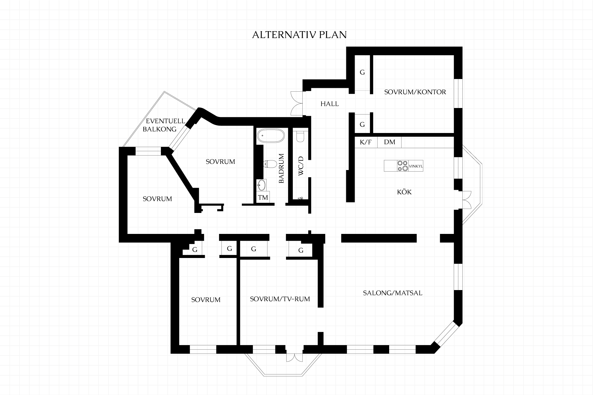 Det finns även en eventuell möjlighet för en tredje balkong mot innergården (se alternativ planlösning), vilket ger ytterligare möjligheter att utöka utomhusytorna. Grannen under har redan byggt en balkong, vilket visar på potentialen. Det finns även gamla rökkanaler för att eventuellt kunna koppla på kakelugnar.