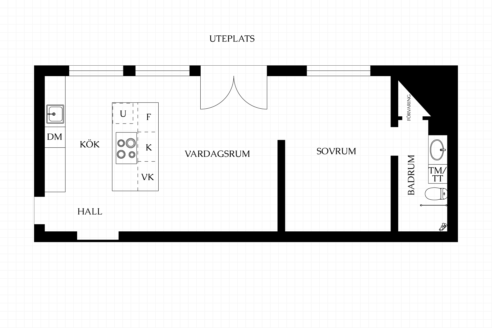 Planlösningen är optimerad och väl anpassad för två personer. Öppen och social mellan vardagsrum och kök med utgång till föreningens innergård. Vardagsrummet ger plats för soffgrupp och matbord. Köket från Kvänum i ett stilsäkert och klassiskt utförande med komplett maskinellt utrustning från Gaggenau och Miele. Sovrum med plats för fullstor dubbelsäng. Sobert badrum från Kvänum med dusch, golvvärme, WC, handfat på kommod, stor spegel samt kombinerad tvättmaskin och torktumlare. Hallen med inredning från Kvänum är välkomnande med god förvaring för ytterkläder och skor.
