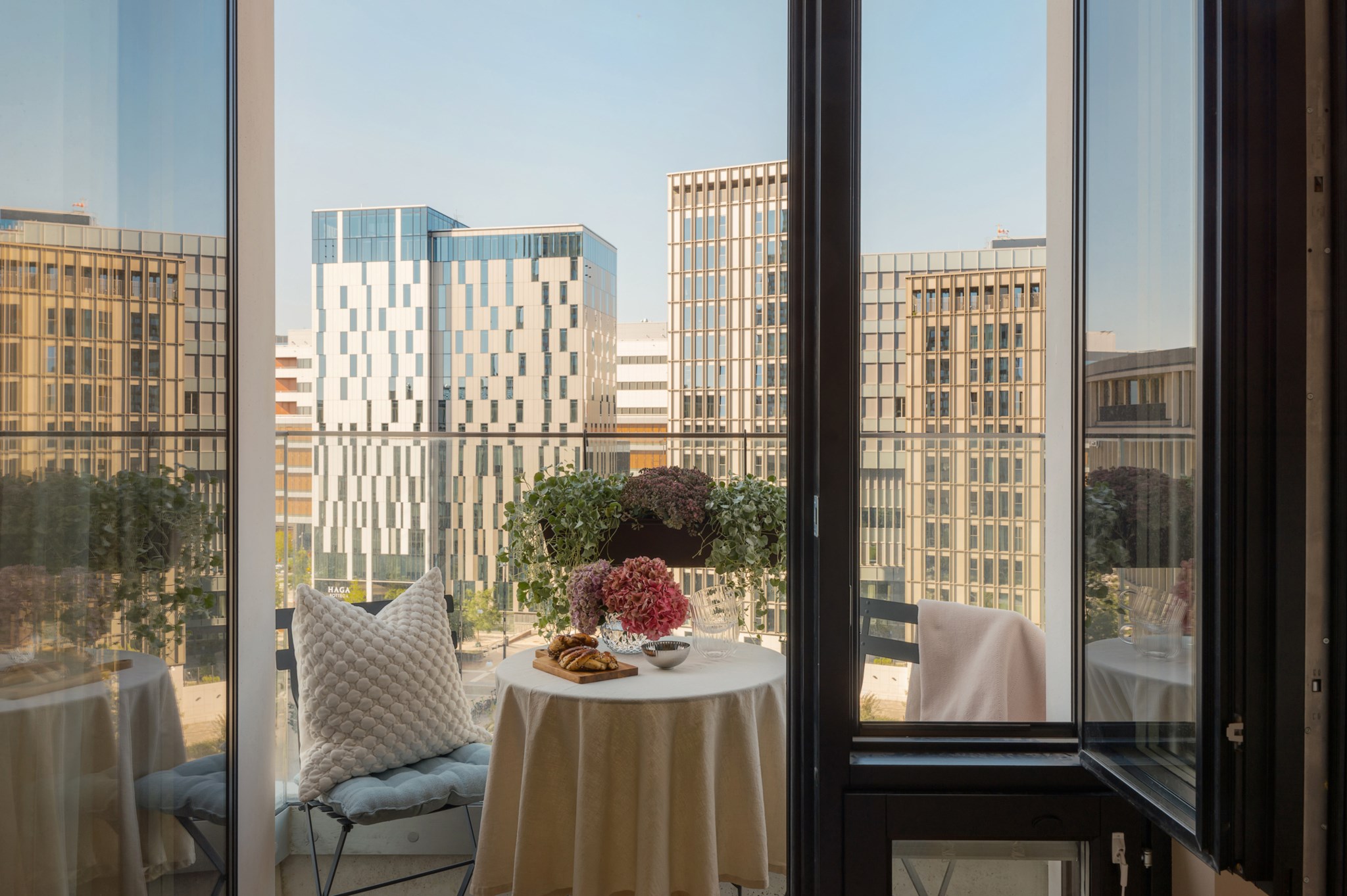 Med ett attraktivt hörnläge högt upp i huset, och med fönster i två väderstreck, bjuder denna välplanerade lägenhet på fri parkutsikt och ett härligt ljusflöde. De exklusiva materialvalen skapar en stilfull helhet, och den soliga balkongen mot parken erbjuder eftermiddags- och kvällssol. Utöver detta finns tre franska balkonger som ytterligare förstärker känslan av rymd och ljus. Det höga läget ger bostaden en generös, inbjudande och hemtrevlig atmosfär.