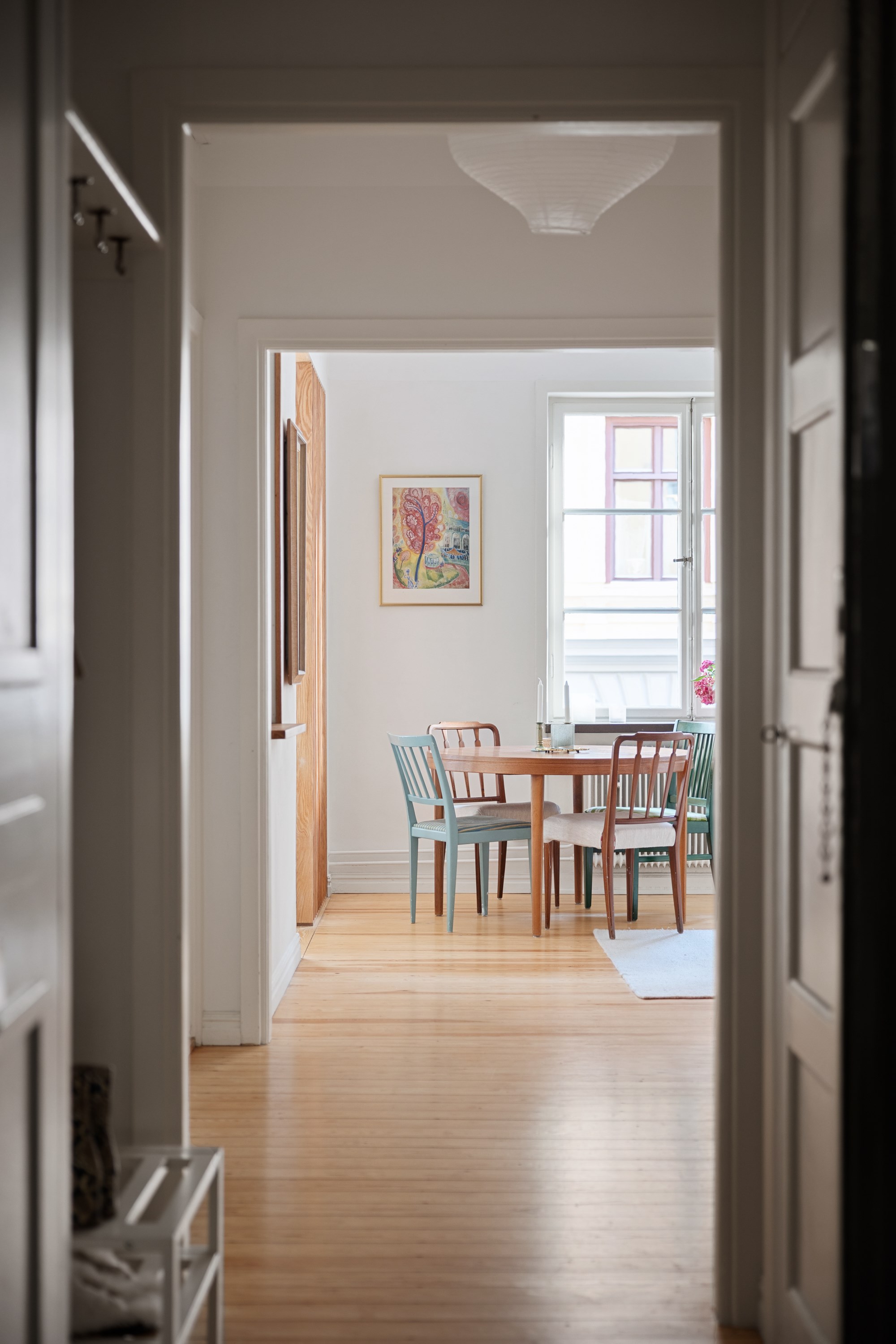 Trevlig hall med för ytterkläder och skor och inbyggd garderob. Gott om plats för andra förvaringslösningar om du önskar. Trägolv och ljusa väggar.