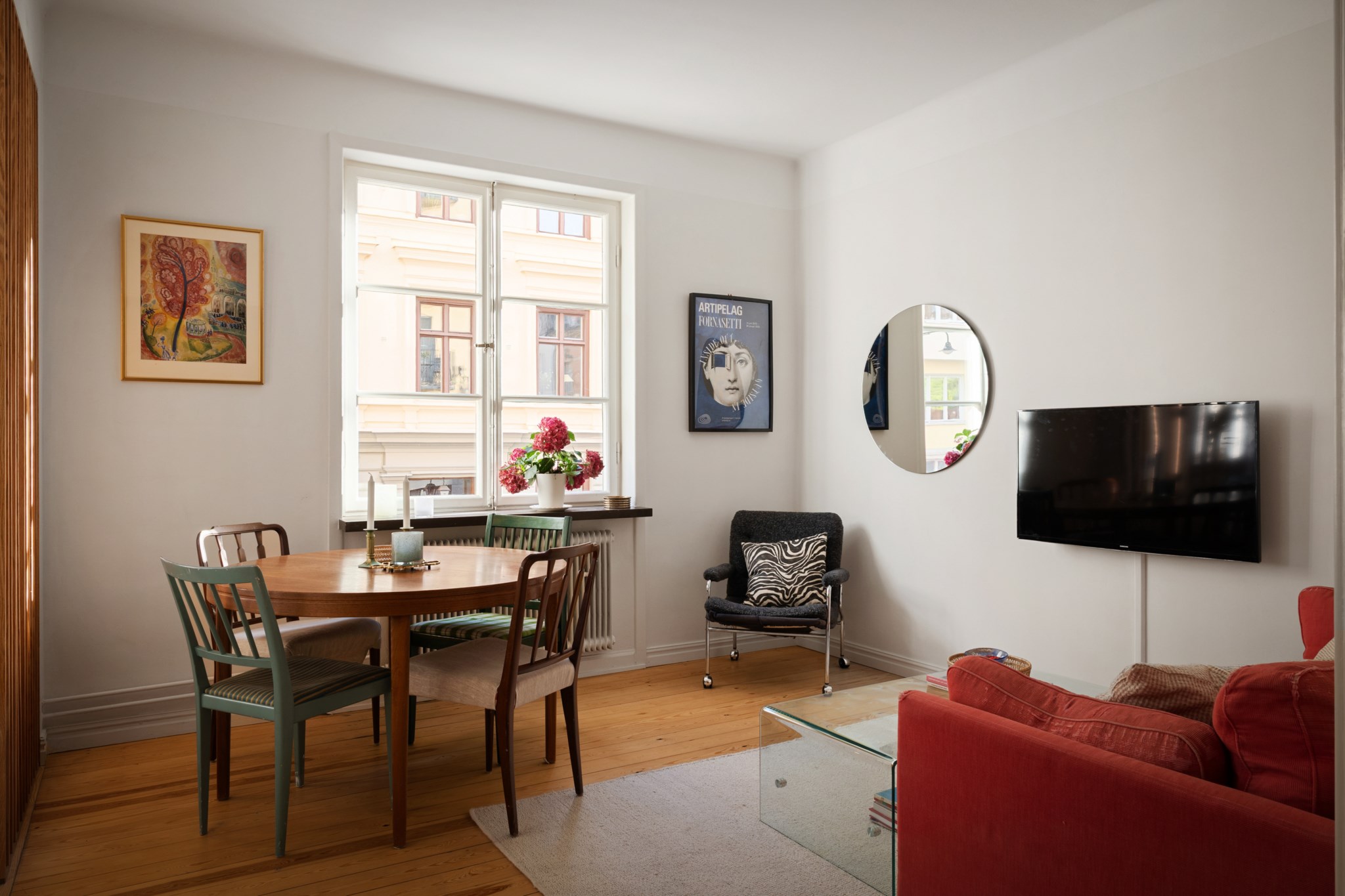 Här promenerar du till Monteliusvägen på bara någon minut – en av stadens mest älskade promenadstråk med magisk utsikt över Riddarfjärden och stadens silhuett. Runt hörnet väntar Mariatorget med sitt levande restaurangliv, medan Hornsgatan bjuder på kultur, design och shopping. Trots det centrala läget känns området lugnt och hemtrevligt, med lummiga parker och charmiga innergårdar som bjuder in till stilla stunder. Kommunikationerna är utmärkta – tunnelbana, bussar och pendeltåg finns på bekvämt gångavstånd, och du tar dig snabbt till både city och grönare utflyktsmål