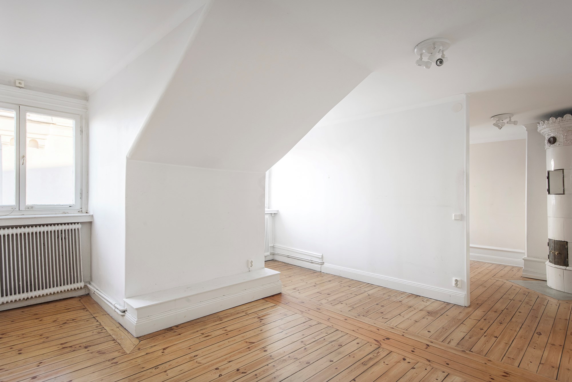 Unik vindsvåning, första gången till salu sen huset byggdes 1889, med stor potential i snart skuldfri Brf på Mariaberget! Skapa Södermalms bästa 3:a i anrik hörnfastighet anno 1889 med spektakulär utsikt över Riddarholmen och Gamla Stan i öster samt Skinnarviksberget, Riddarfjärdens vatten och Västerbron i väster vilket ger en magnifik skyline. Renoveringsmöjlighet med fin planlösning om 68 kvm golvyta fördelat på 2-3 rok med fönster i två väderstreck omgiven av kvarterets pittoreska kulturhus, som tagna ur en bok av Per Anders Fogelström. Bostaden har en spännande histioria då den är i sin grund är från byggåret 1889 med rustika trägolv, två kakelugnar, djupa speglade dörrnischer och spegeldörrar men med inslag av vindskaraktär såsom takkupor, snedtak och murstock. Denna vindslägenhet har aldrig tidigare varit på marknaden och upplåts nu av Brf Kattfoten Mindre 14 som är en välskött och lågt belånad förening som äger sin mark. Försäljningssumman kommer att göra föreningen skuldfri med en stark kassa därtill. Bekvämt boende med hiss till våningsplanet. Här ges möjlighet att skapa ditt egna drömboende på lugnt och ostört läge på första parkett Mariaberget!