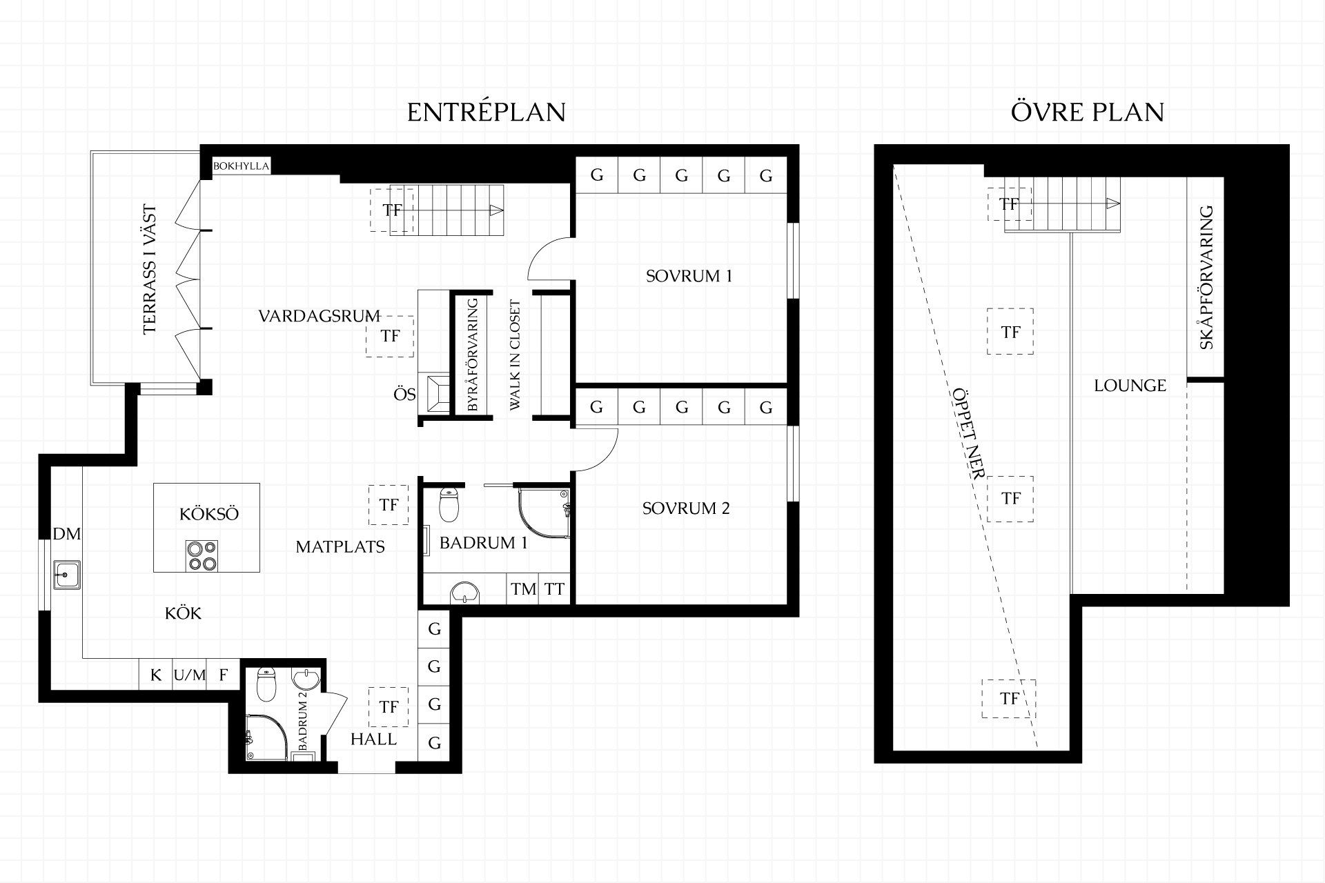 Via en vacker smidestrappa med matchande räcke nås loftplanet om ca 21 kvm golvyta. En flexibel och inspirerande yta som idag används som lounge och träningshörna. Det öppna läget mot vardagsrummet skapar en unik och modern rymdupplevelse.