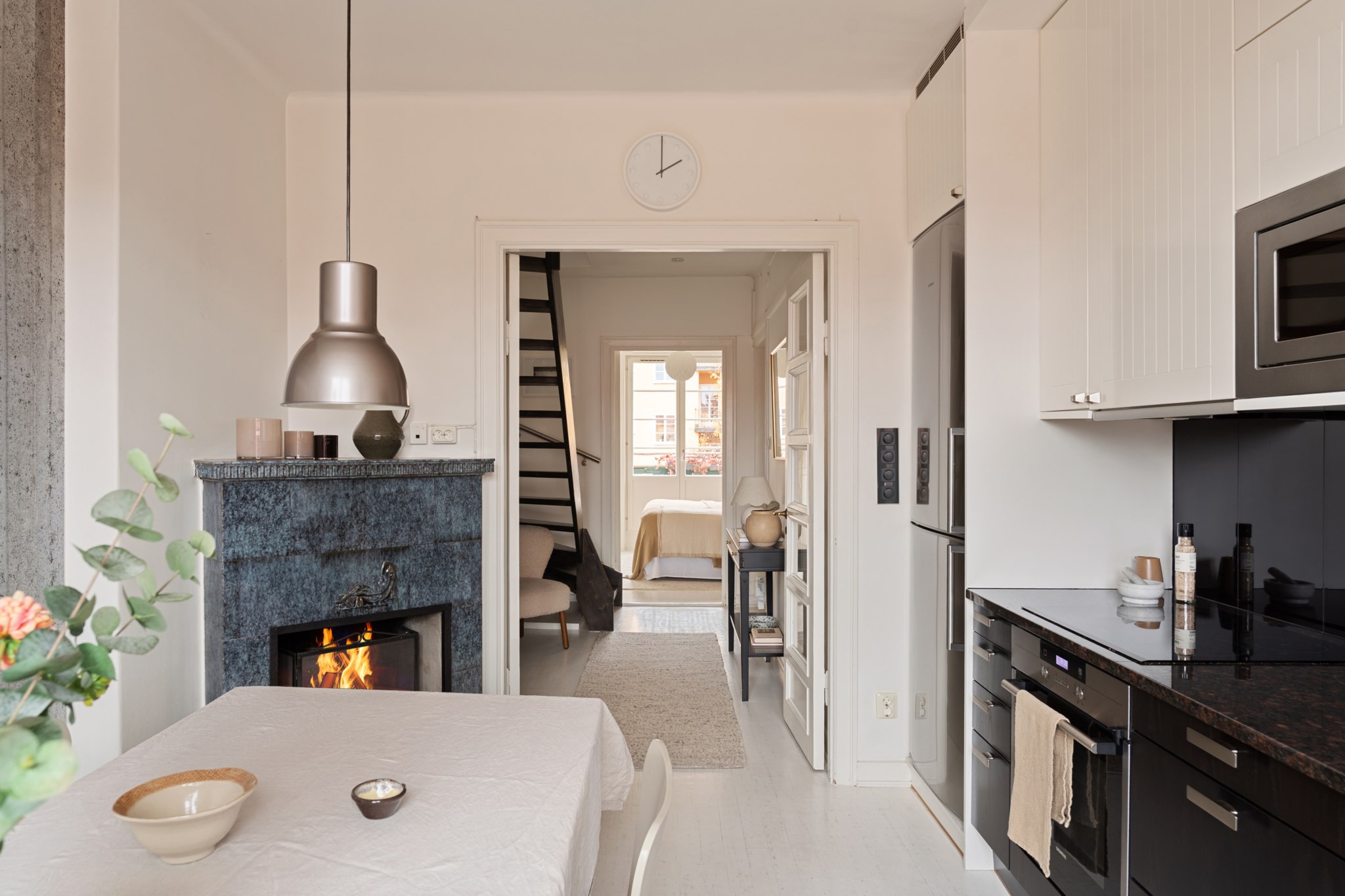 Det här är en bostad för dig som vill bo med karaktär, ljus och utsikt mitt i stan med sommarkvällar på terrasserna och vinterkvällar framför brasan.