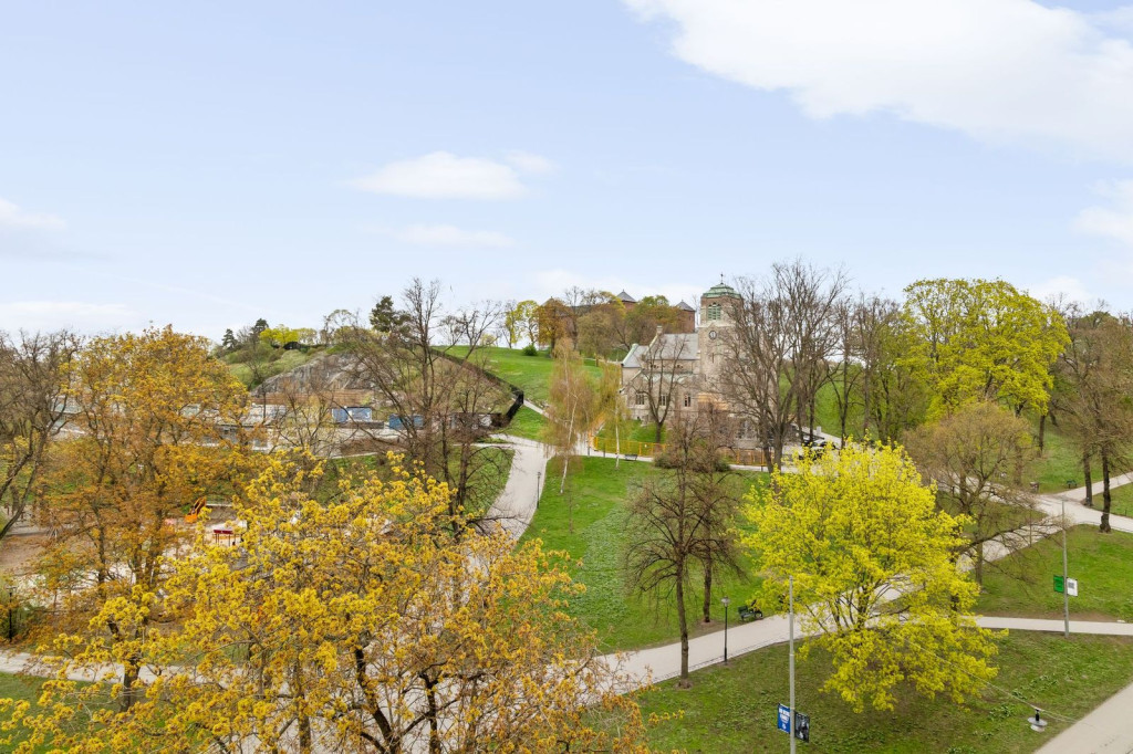 Härlig våning invid populära Nytorget, med balkong, rymlig hiss och parkutsikt.